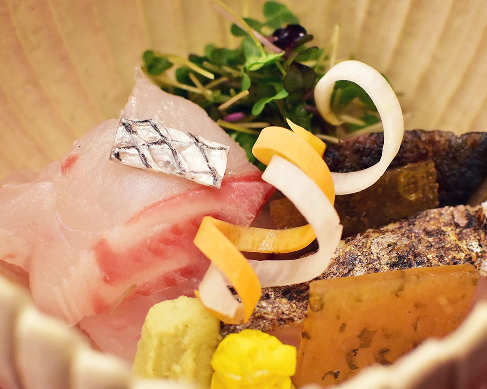 요리, 그릇, 공간의 연출, 스키야즈쿠리 건축물의 모습 등에 위화감 없이 「교토스러움」의 오모테나시를 도쿄에 가져 왔습니다. 현관의 돌을 밟는 순간부터 조금씩 힘을 받는듯한 “”카이세키””라는 양식과 전통을 지키면서도, 정좌가 익숙치 않은 사람을 위한 호리고타츠석이나 의자석도 준비하고 있습니다.