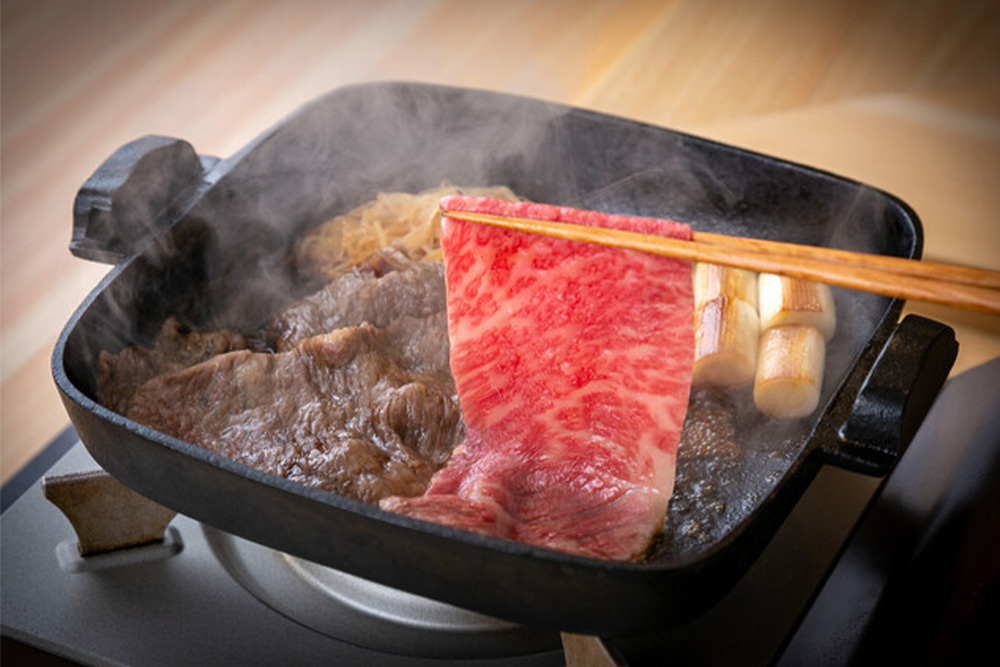 110년 동안 사랑을 받아 온 전통 스끼야끼는 와규의 맛을 최대한 끌어올리는 히야마의 진면목