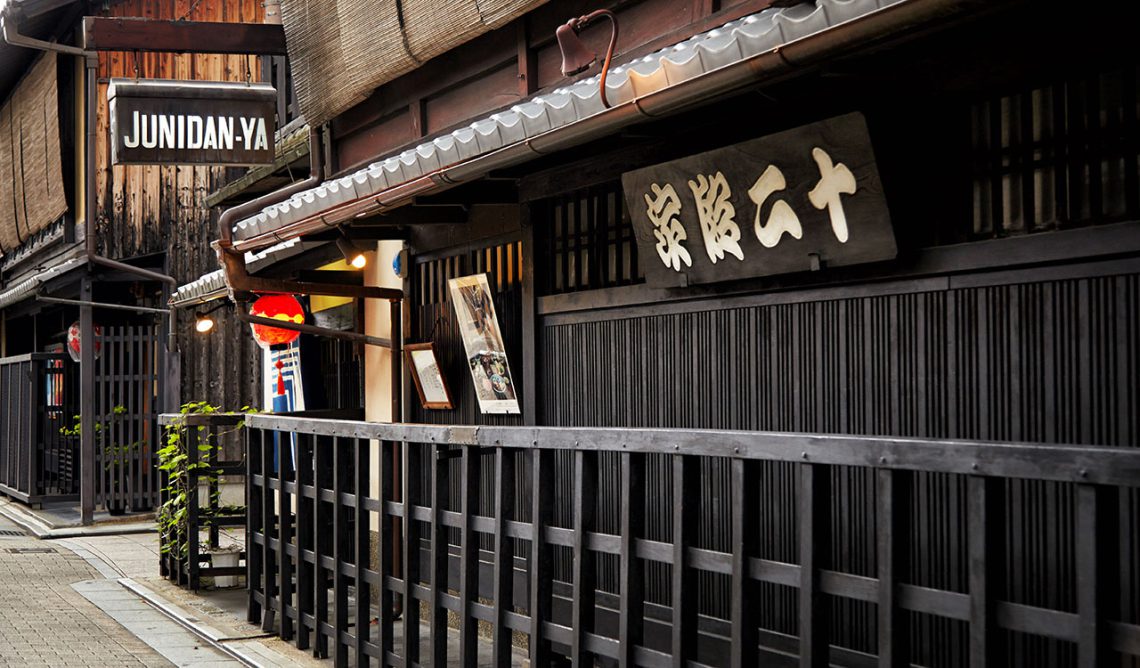 기온의 하나미코지(주도로)를 조금 걷다가 왼쪽으로 들어가면 ‘샤브샤브’의 발상지인 ‘주니단야 본점’이 있습니다. (하나미코지에도 주니단야가 있습니다만, 이곳은 지점입니다. 주니단야를 끼고 돌아 들어가면 본점이 있습니다)
