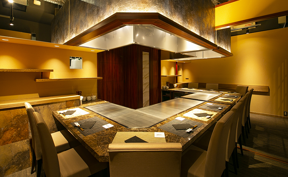 가게 내부는 전 좌석 눈앞에서 요리를 관람하실 수 있는 카운터 석입니다. 셰프가 눈 앞에서 섬세하면서도 화려하게 요리하는 모습을 즐기실 수 있습니다. 개인실 공간의 카운터석도 갖추고 있어, 어린이 동반 손님도 마음 편히 이용 가능하십니다. 오사카 우메다에서 고베 스테이크 이시다가 선사하는 본고장의 고베규 스테이크를 부디 경험해 보시길 바랍니다.
