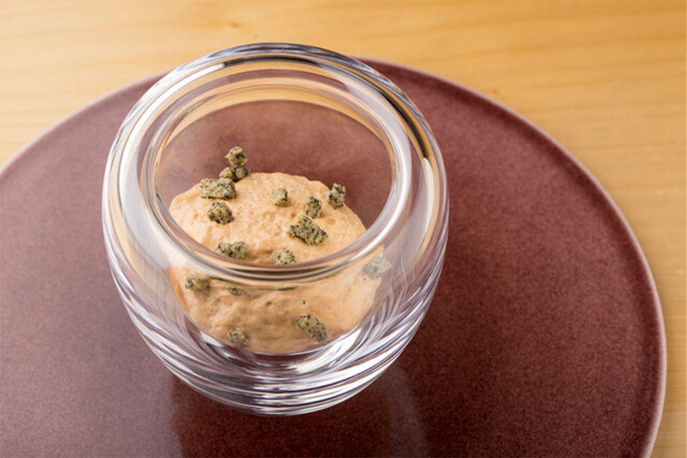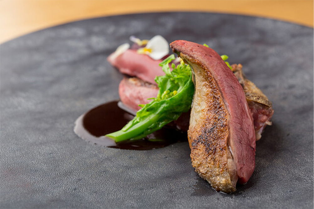 일본 전국에서 들어오는 자연이 주는 생명을 상태, 온도, 조리법, 구성, 조합, 코스, 페어링 음료에 이르기까지 [알고리즘(l’algorithmme)]의 방정식이 있습니다. 특히 프랑스 요리 애호가들을 기쁘게 하는 육류와 생선의 익힘에 주목해 주시면 좋겠습니다.