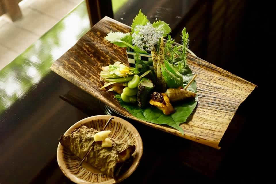 스스로 야산에 들어가 밭을 갈며 식재료를 조달합니다. 이렇게 수확한 농작물을 정성스럽게 요리하고 있습니다. 그릇이나 식재료 하나하나에도 매우 훌륭한 일본의 문화가 담겨져 있습니다.