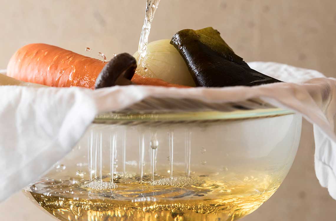 사골, 스지(牛筋), 향미 채소(香味野菜)를 매일 10시간 이상 정성껏 끓여낸 육수는 황금빛을 띠게 됩니다. 이것이 바로 타카후쿠에서 만드는 샤브샤브용 황금색 육수입니다.