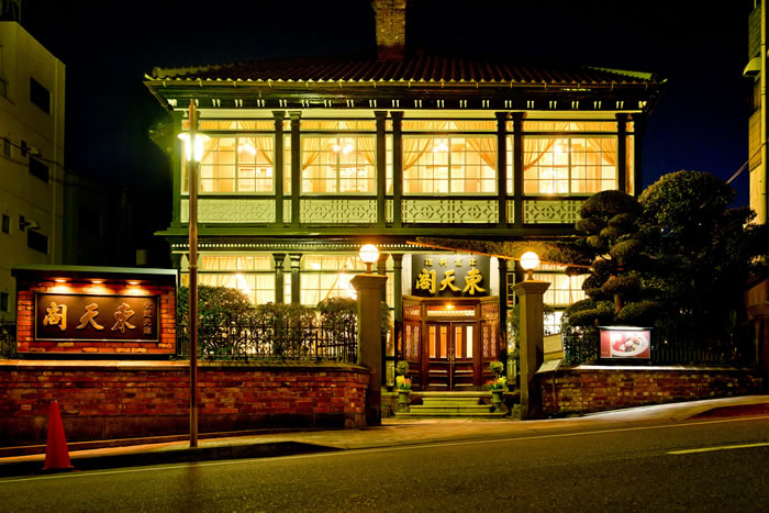 1894년 독일인 F·비숍의 저택으로 지원진 목조 서양식 건물로 1945년 중국 다롄 일류 셰프(선대 창시자)가 이어받아 중국황실요리점「토텐카쿠(東天閣)」를 오픈. 역사와 전통과 일본문화를 접목시킨 최고급 중화요리점. 일본 그 어느곳에서도 접하실 수 없는 최고급의 공간과 시간을 소중한 가족, 지인, 회사 고객들과 즐겨주세요.