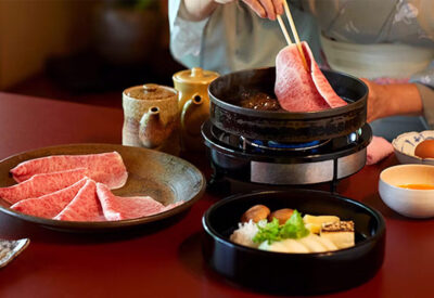 A restaurant where a major supplier of meat to butchers now directly offers guests premium, high-quality cuts of beef.Sukiyaki Shabushabu