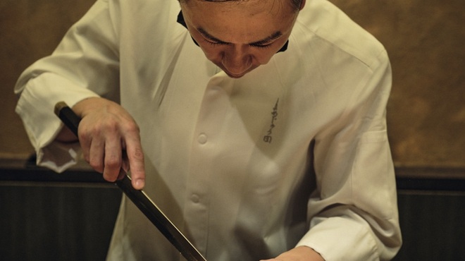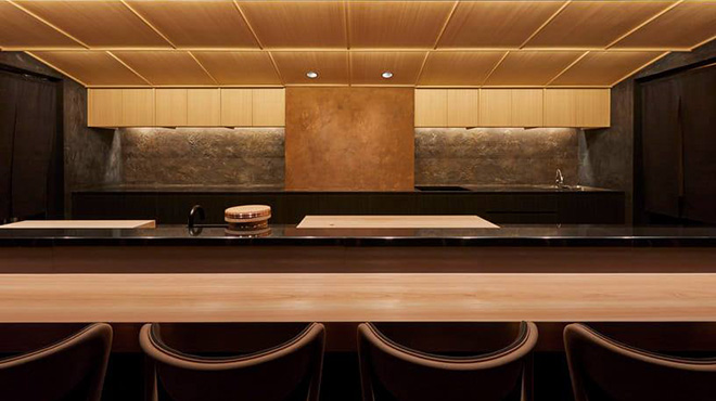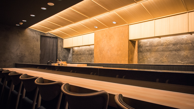 The interior of the restaurant was done by the designer of the two-star French restaurant “Esquisse, with a beautiful hinoki-wood counter set against a black-themed space which creates a dignified and luxurious atmosphere.