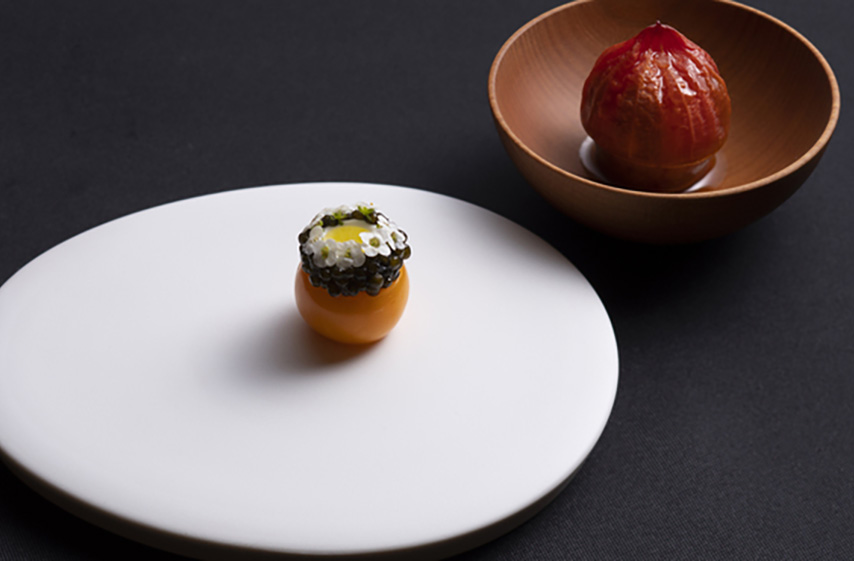 Head Chef Shinya Fukumoto, who spent eight years in Italy and Spain before completing his current original style, creates dishes which bring out the flavor of the ingredients to the fullest and are polished to the smallest detail. Even now, he occasionally travels to Spain to continue incorporating Japanese ingredients, chef inspiration, and techniques into his cooking.