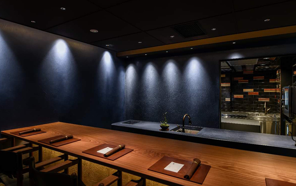 Head Chef Junichi Nakamine trained at a Michelin 2-star establishment in Paris before returning to Japan and further honed his skills and learned about communication with guests and the depth of Japanese ingredients in Osaka. He states that his concept is “to share an extraordinary experience of space and cuisine from the moment guests steps into our restaurant”. An astonishing total of 30 dishes is offered in his course meal, each which has evolved from a single inspiration into an unique culinary creation.