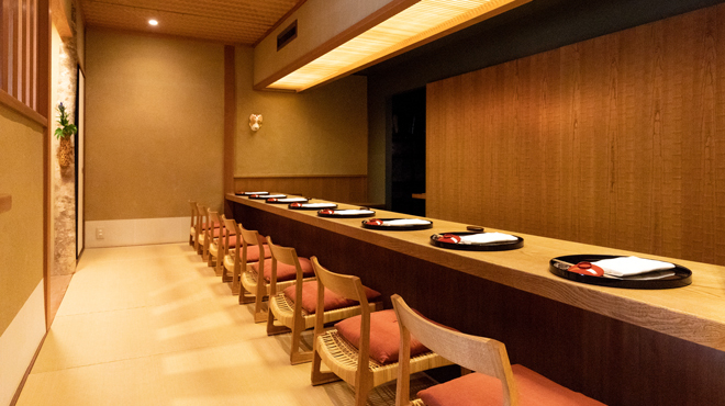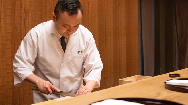 With a strong bedrock of basics and tradition, this free and unique style of Japanese cuisine is truly one that can only be experienced at Miyamoto. The commitment to provide the best hospitality by the Chef and his wife can be felt in their dishes, the rare dishware that the dishes are presented in, and the beautiful chestnut wood counter which only seats up to 8 exclusive guests at once. Miyamoto’s courses, which change monthly, never ceases to amaze returning guests, as the Chef constantly adds and incorporates techniques he finds in other cuisines to his own.