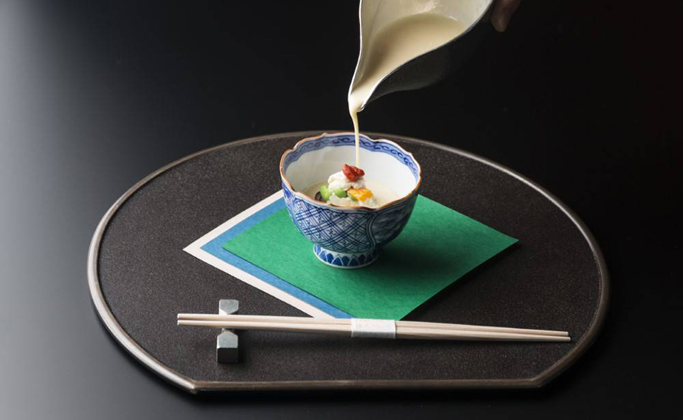 Ingenious and unique Kyoto cuisine created through a foundation in traditional Japanese cuisine and vast experience of culinary training in various countries.