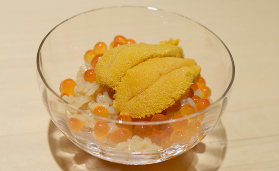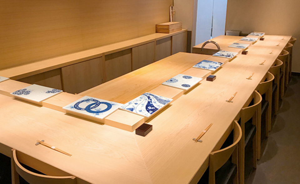 Guests at Sushi Kurosugi can enjoy the finest and freshest seasonal ingredients selected from around Japan. The chef is highly selective about the rice used for the sushi. Rather than using sugar as its seasoning, Sushi Kurosugi uses “akazu,” a well-rounded mild red vinegar made from sake lees with low acidity. It has a soft sweet flavor and a refreshing taste of umami which is not too over-powering; a sushi rice that guests will never tire of. Sushi Kurosugi offers lunch and dinner courses that are suitable for a variety of occasions and preferences. Sushi Kurosugi has been listed in the Michelin Guide for seven years in the Kansai edition of the famed Michelin Guide.
