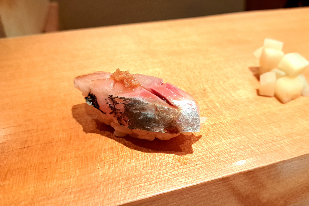 Chef Horiuchi uses two types of vinegar, red and white, for the shari and adjusts its amounts based on the neta he uses that day. This results in sushi with a satisfyingly firm shari and a well-balanced composition.