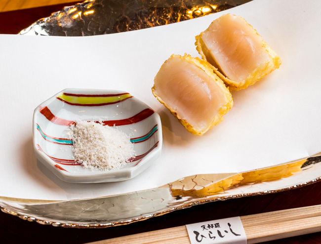 2007年开业于大阪北新地的「天妇罗 平石」是家有着连续7年获得米其林一星享誉的天妇罗专卖店。 店家的招牌料理鱼翅天妇罗等,由日本各地严选采购而来当季最新鲜的食材, 搭上平石大厨独特的油炸法,所炸出的天妇罗无论外观或美味程度皆让人惊叹不已。