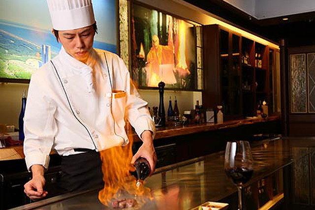 在这里将能够亲眼目睹主厨在眼前料理牛排、同时品尝最高级的宫崎牛的曼妙滋味。