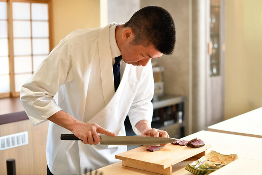 他希望透过英语与法语,向海外宾客传递日本料理的精髓,并怀抱纯粹的初心,专注于料理创作。
