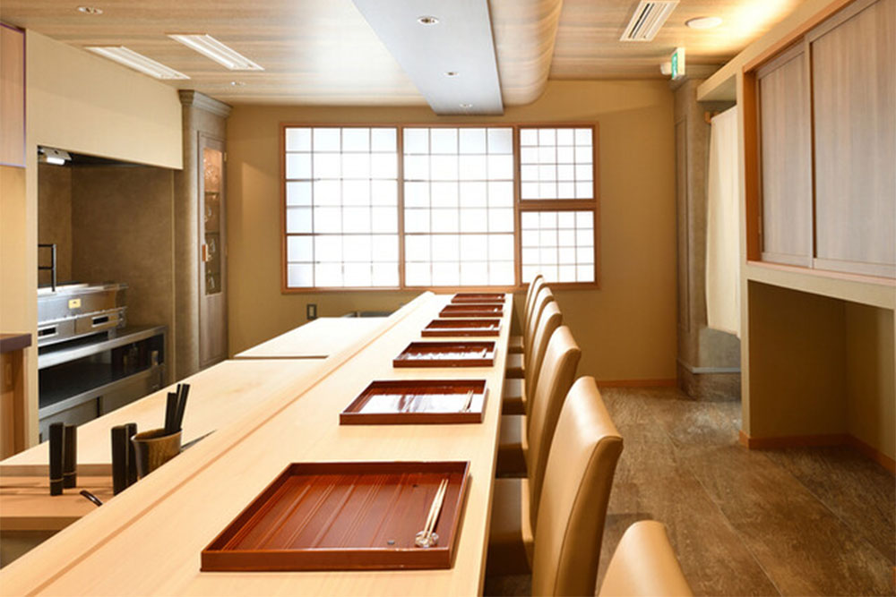 店内仅吧台座位共8席,吧台座位也拉近了顾客与料理人之间的距离。
