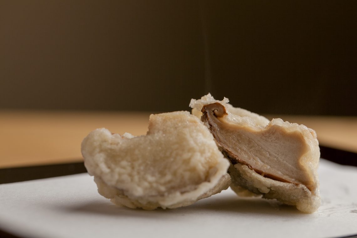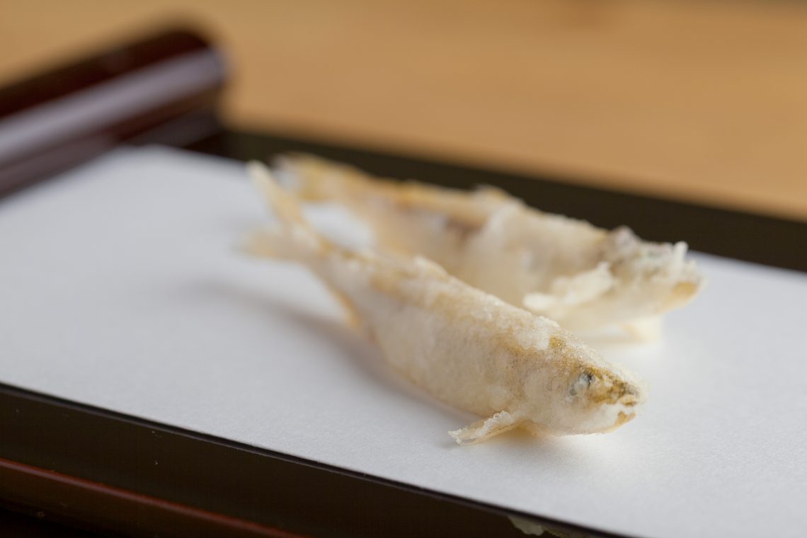 本店的特徵是針對不同食材來調整油鍋的溫度。雖然是兩隻同樣的蝦子,卻能因溫度調整的關係,嘗起來卻截然不同,足以讓任何人都能夠知曉其差異的如火純青般的技術。使裹復在麵衣中的食材受熱到稍稍轉變為金黃色的精湛功夫亦讓人驚嘆。從沒想過天婦羅竟能夠將蔬菜和海鮮等食材的鮮味如此的展現出來,實在讓人感動與驚艷。